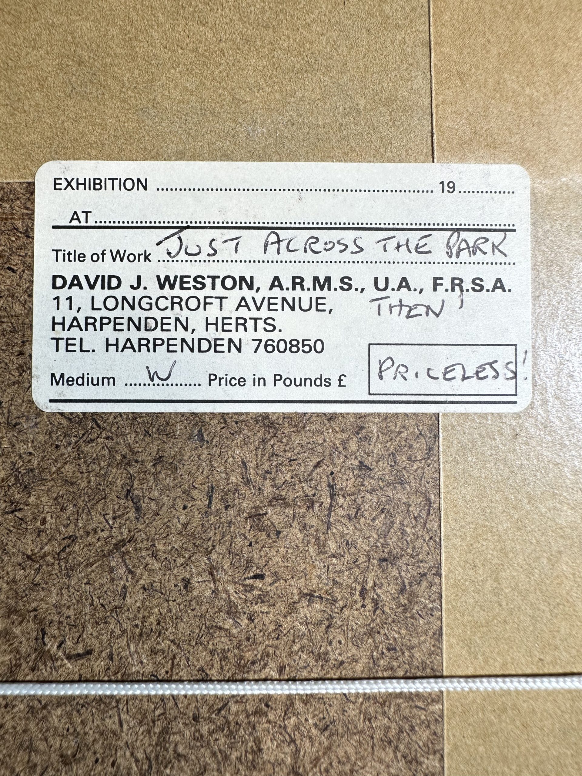 Just Across The Park by David J Weston, size is 32 x 23cm. Even though I have added images from the back of the frame, the frame was removed as it was damaged.