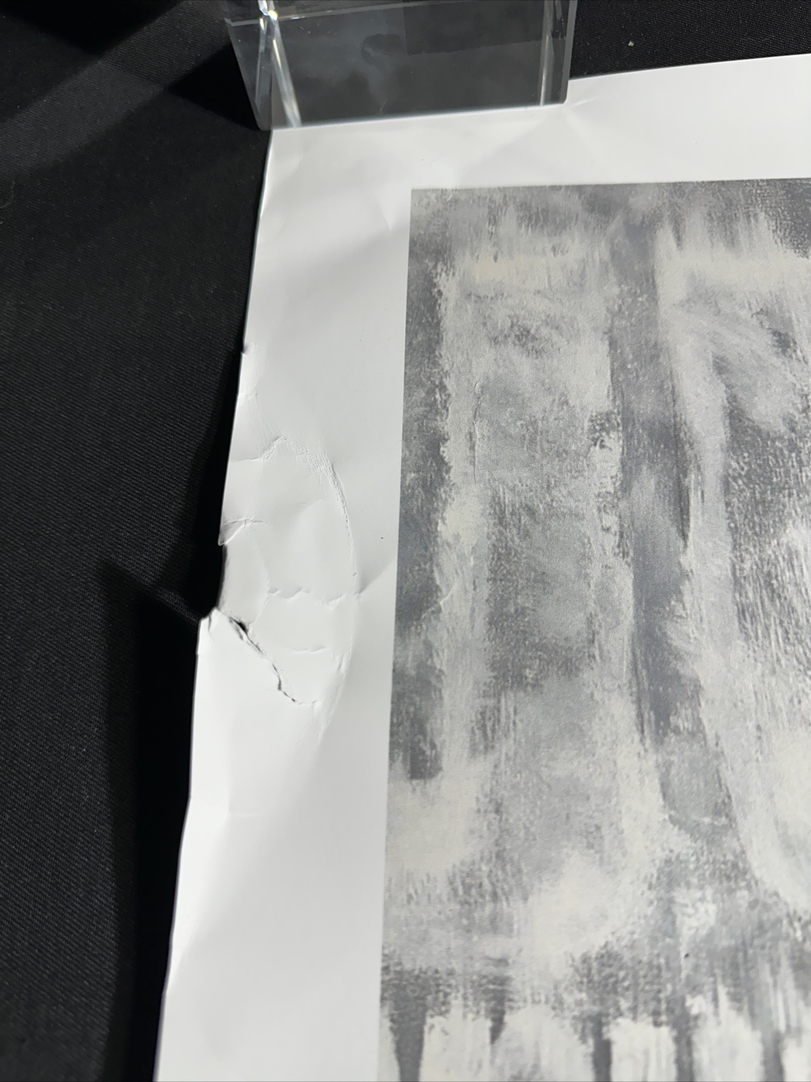 This was unfortunate to have been damaged, but I think once framed it will look ok.
