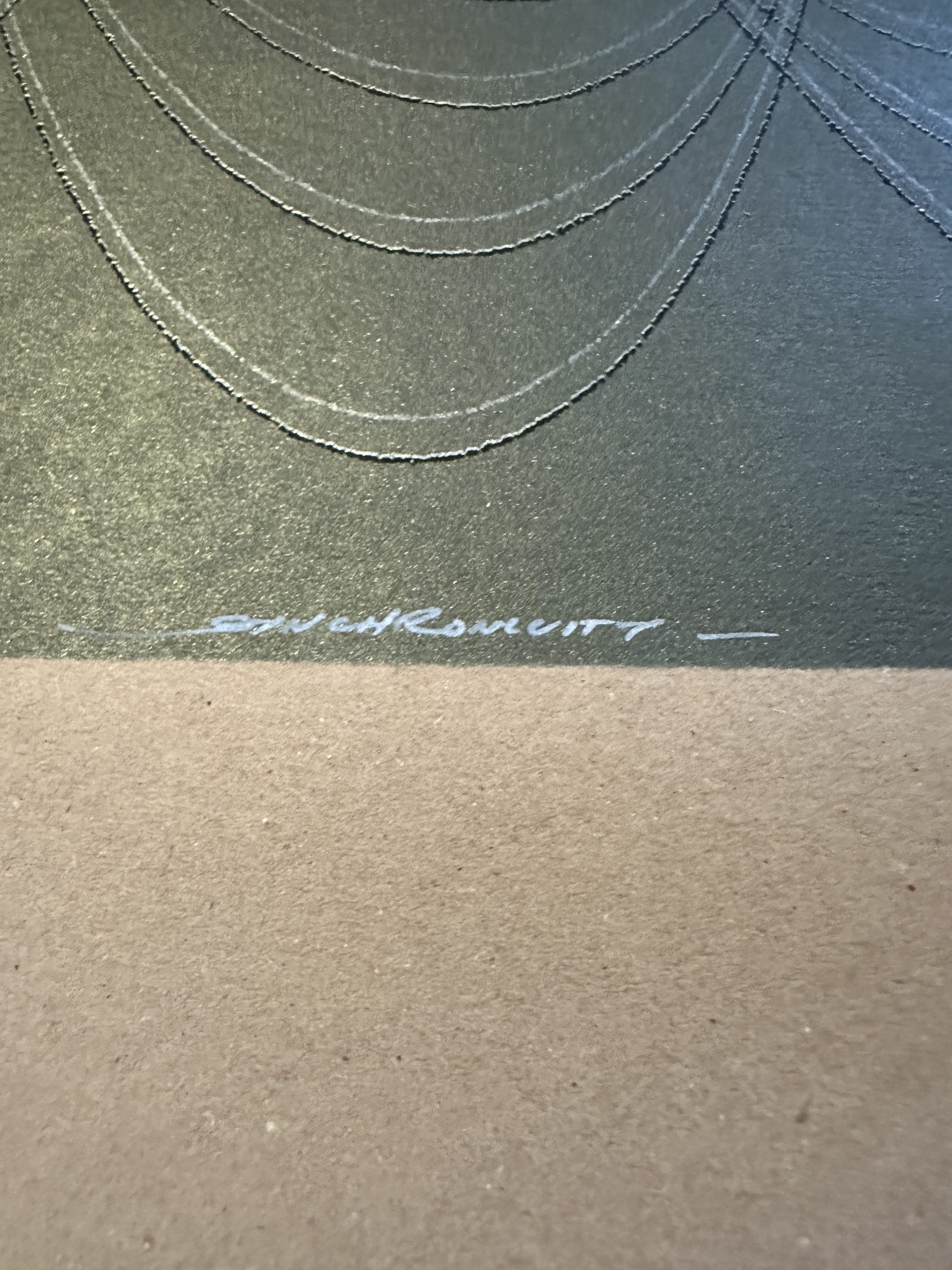 Ten individual layers of opacity reduced inks have been built up on the printing press using an overprint process to form this tightly defined sound themed edition. The finsihed prints have a unique quality that is more of a painting that a print.